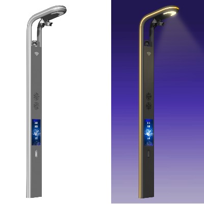 菲尼特智能智慧灯杆不仅拥有基本的智能照明功能,还集信息发布功能、信息采集功能、信息传输和控制功能、绿色新能源充电、环境监测等于一身,通过配备的户外小间距LED显示屏、摄像头、无线WiFi,可实现 LED 路灯照明、LED 显示屏显示、通讯与控制、 视频监控、人/物监测、USB应急充电和紧急呼叫等不同应用。